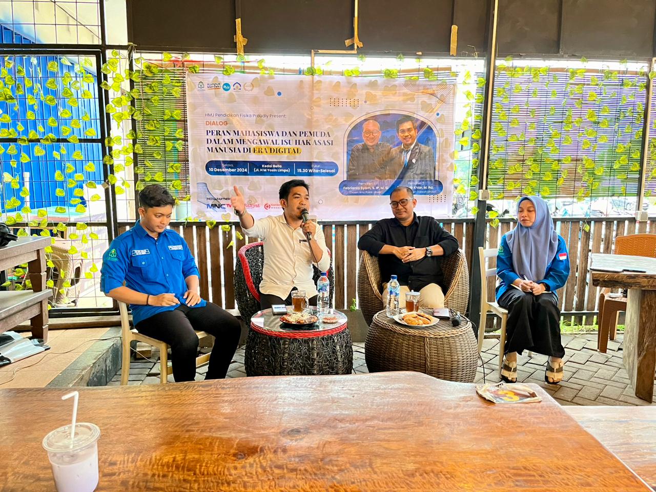 MAKASSAR – Badan Eksekutif Mahasiswa (BEM) Fakultas Tarbiyah dan HMJ Pendidikan Fisika UIN Alauddin Makassar menggelar diskusi bertajuk “Peran mahasiswa dan pemuda dalam mengawal isu hak asasi manusia di era digital” pada Selasa, 10 Desember 2024.