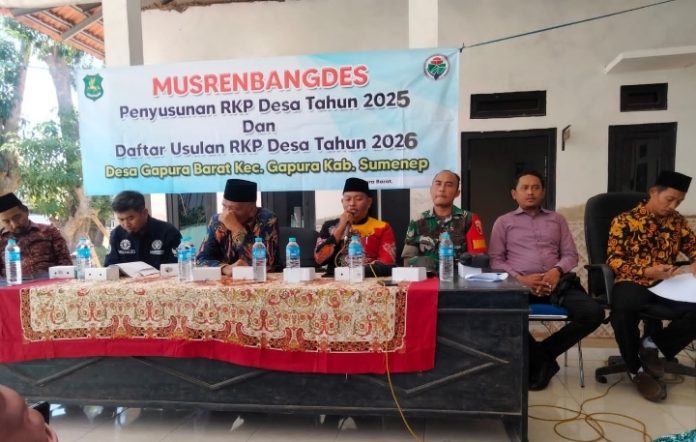Kegiatan Musrengbangdes Desa Gapura berikut penyusunan RKP tahun 2025 dan usulan RKP tahun 2026 bertempat di Balai Desa Gapura Barat Kec. Gapura Kab. Sumenep. (dok)