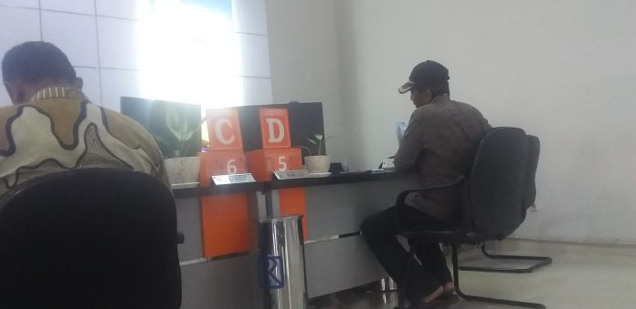 Akhirnya Sarkawi dilayani di kantor BRI Cabang Kab.Sumenep. (Amiruddin)