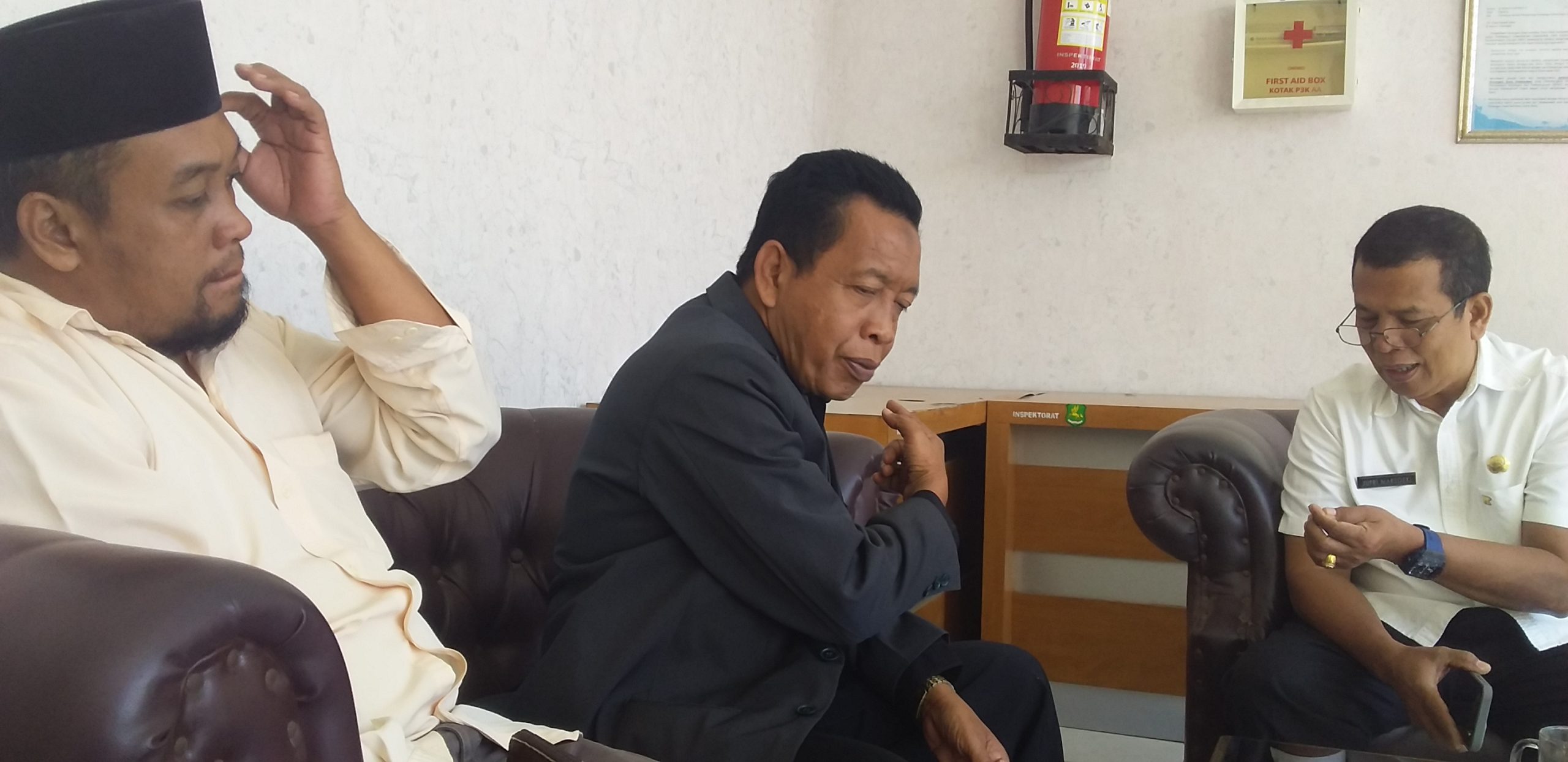 Ketua LPHRI Jatim, Drs. Ec. Moh. Anwar, SH saat mendatangi kepala Bidang Penindakan, Jufri Marsoeki di ruang Inspektorat Kab. Sumenep. (ft. Faisal ER)